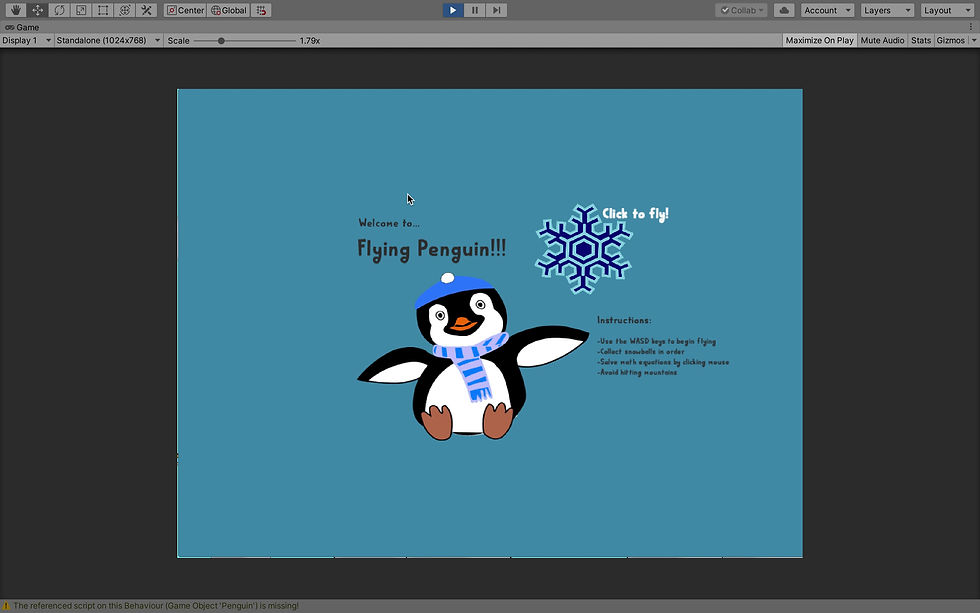 A simple math game. The goal is to fly the penguin to each snowball, correctly answer the problem without losing three lives.